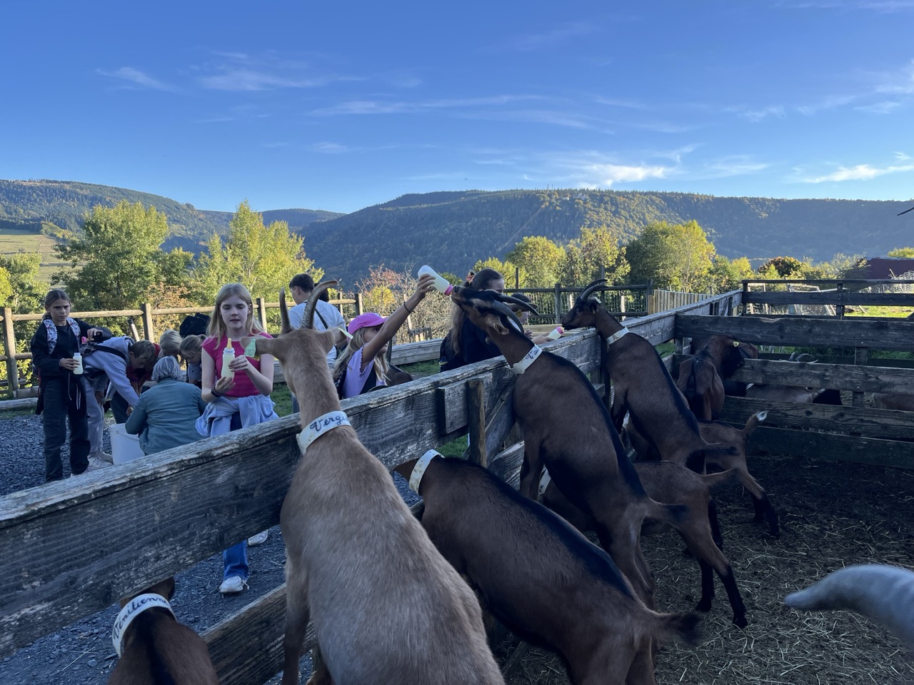 Die französisch-deutschen Kleingruppen spielten sich ihre Szenen nicht nur gegenseitig vor, sondern auch vor einem externen Publikum (SchülerInnen des Collèges Pierre Gironnet in Pontaumur). Bei einem gemeinsamen Picknick fanden interessante Gespräche zwischen den Schülerinnen und Schülern statt. Ausflüge und Wanderungen in die Umgebung rundeten den Aufenthalt ab. So besuchte die Gruppe z.B. „La Roche des Fées“ und den Vulkan „La Banne d’ Ordanche. Zudem besuchte die Gruppe eine Ziegenfarm und durfte sogar die Ziege „Sicile“ melken. Desweiteren führten die Schülerinnen und Schüler in gemischten Gruppen eine Stadtrallye in La Bourboule durch. Ein weiteres Highlight war der Besuch des Parks „Vulcania“. Die Drittortbegegnung endete mit einer gemeinsamen „Boum“.